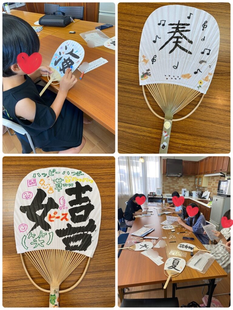 今年もみんなでうちわ作りをしました。こちらは新松戸教室の様子です。